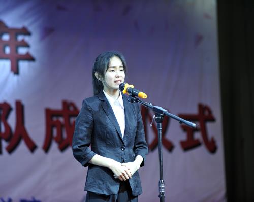 活动在由孙澜耘老师带领全体青年学生面对国旗庄严誓词时达到了高潮。雄壮的宣誓声,在会场久久回荡,一颗颗年轻的心里,流淌着为共产主义奋斗终身的热血。
