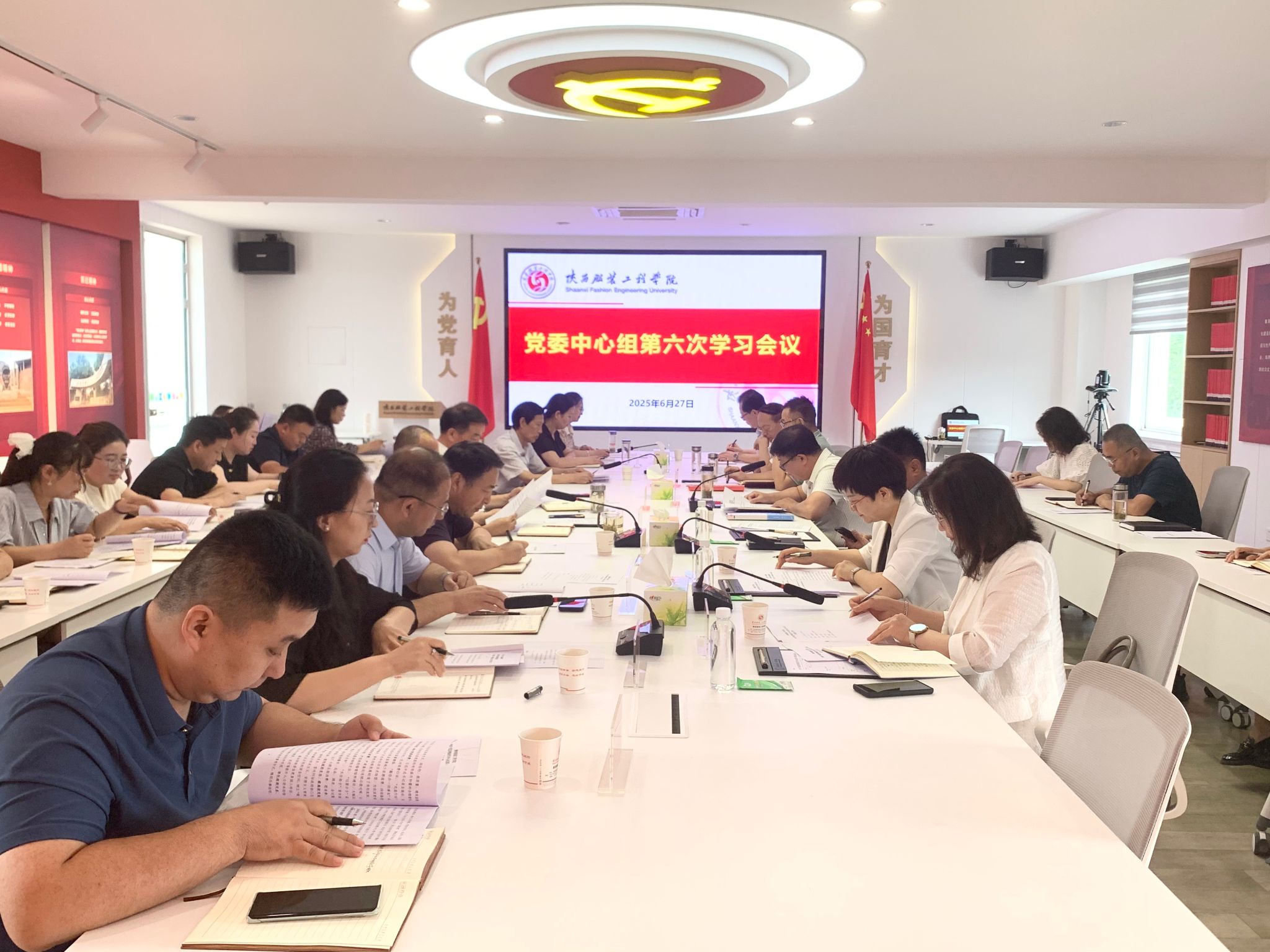 陕服新闻网讯(李文斌)6月27日上午,学校在326会议室召开2025年第6次党委理论学习中心组学习会议。校党政领导班子成员、党委委员、纪委委员、党政办主任、人事处处长、党委工作部门负责人、各院党委书记、党总支书记、直属党支部书记、机关各党支部书记参加会议。委厅旁听组陕西中医药大学党委副书记苏晓波、陕西中医药大学党委宣传部部长李隽、西安音乐学院党委宣传部部长李华列席会议。党委书记王岗主持会议。