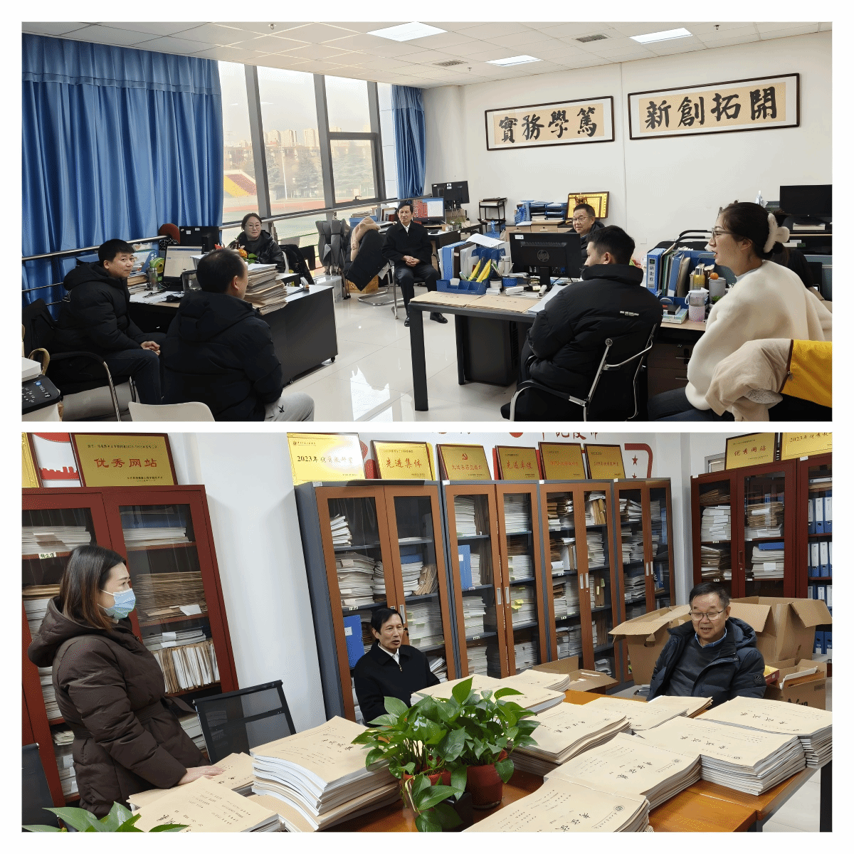 姜寿山一行查看档案整理和试卷批改情况后,同二级学院(部)领导及部分教师进行了座谈交流,重点就2025年年度考核工作交换了意见。姜寿山强调,2025年年度考核坚持公平、公开、公正原则,实行量化考核,目的就是科学考量各单位和教师的业绩,减少人情因素,激励大家勤奋努力,比、学、赶、帮、超,形成积极向上的工作状态和氛围。