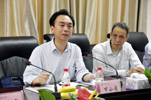 在随后举行的座谈会上,调研组观看了镐京集团宣传片,听取了李立执行院长关于季羡林国学院筹备、建设和发展的基本情况介绍,以及季老与其弟子吕明十二年“忘年交”、师生情,季羡林国学院落户陕西服装工程学院的缘由。调研组组长、省委宣传部宣教处处长可小闹做了重要讲话。他说,咸阳历史悠久,人文底蕴深厚,红色文化资源丰富。他们本次调研为咸阳曾经的辉煌而震撼,为咸阳人民长期的坚守而惊讶,为咸阳人的努力和执着而感动,为咸阳未来发展的前景而自豪,为本次调研的收获而高兴,为咸阳目前存在的问题和困难而焦虑。谈到季羡林国学院,他对吕明董事长和陕西服装工程学院为继承季羡林国学思想和弘扬中华传统文化做出的贡献表示敬佩。他说:“季老不朽的著作和实物万余件、照片千余幅、大量文稿珍藏于咸阳,季羡林国学院落户陕西,你们做了一件功在当代,利在千秋的大事、好事。相信你们的付出,一定会有好的回报。”他说,季羡林的大国学思想和当前培育和践行社会主义核心价值观是一脉相承的。他希望季羡林国学院在保护藏品上下功夫,在发挥其教育作用上出实招,使其成为爱国主义教育的好基地。